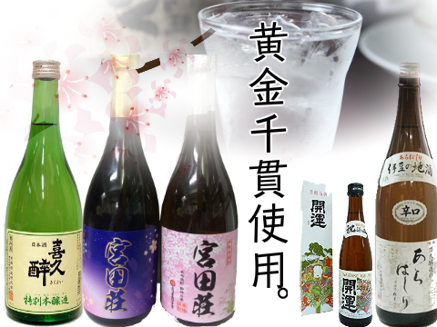 地元、静岡県産の味わい深い日本酒をご用意いたしております。純米酒、本醸造、清酒(喜酔、開運、あらばし他)